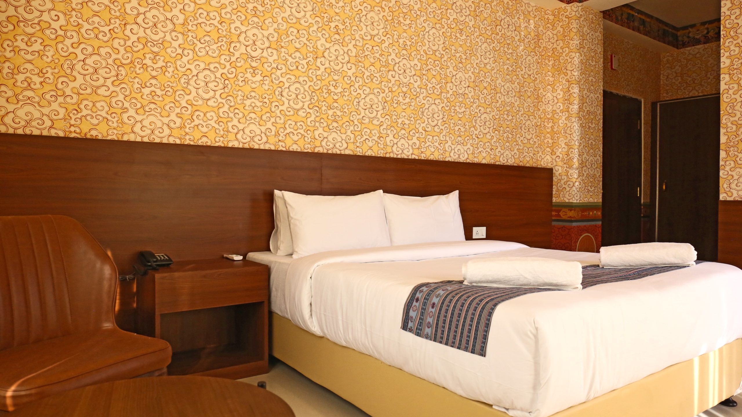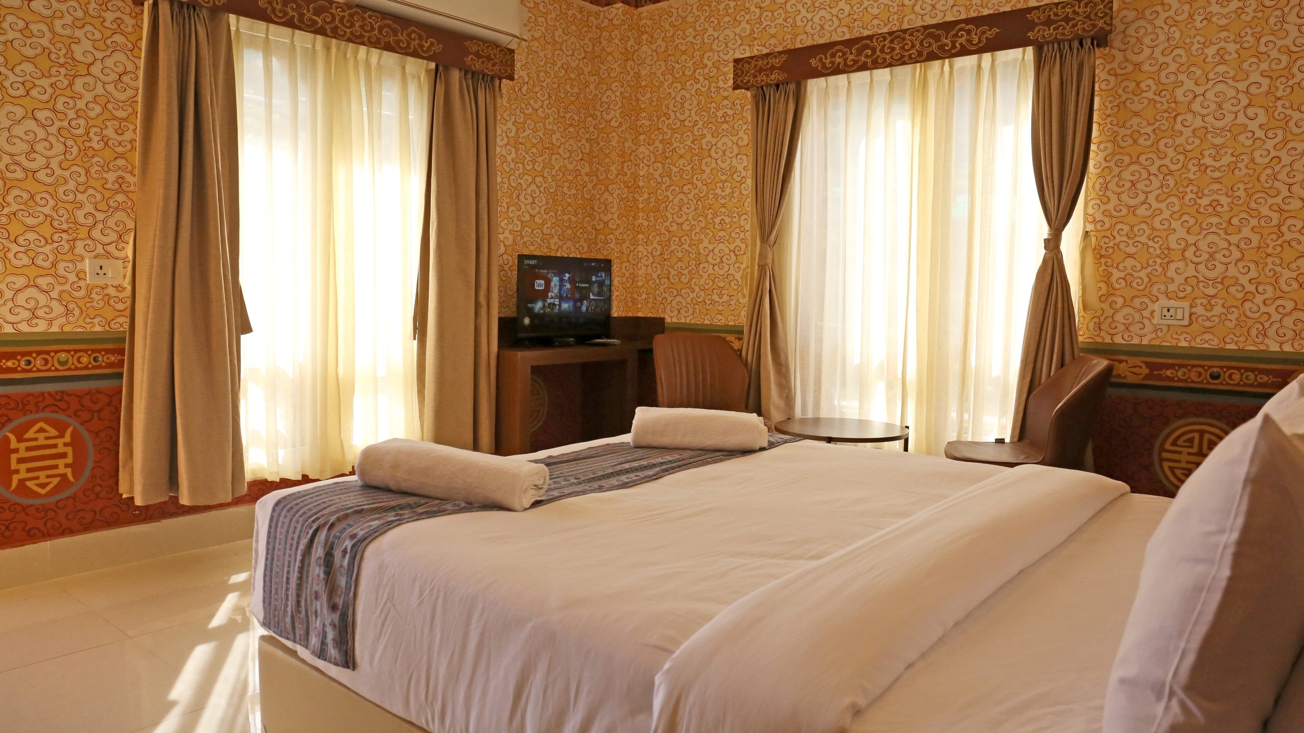 The en-suite bathroom is equipped with premium toiletries, a bathtub for relaxation, and a spacious walk-in shower. Large windows flood the room with natural light and offer serene views of the surrounding landscape, creating a peaceful retreat for families. With ample space to relax and unwind, the Family King Size Deluxe room at Punakha Boutique is the perfect choice for families looking to enjoy a luxurious and memorable stay together.